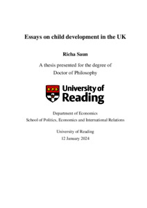 Saun, R. (2024) Essays on child development in the UK. PhD thesis, University of Reading. doi: 10.48683/1926.00117588