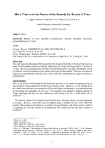 Whayman, D. ORCID: https://orcid.org/0000-0003-1026-5646 (2017) More clues as to the nature of the remedy for breach of trust: Creggy v Barnett. The Conveyancer and Property Lawyer (2). ISSN 0010-8200