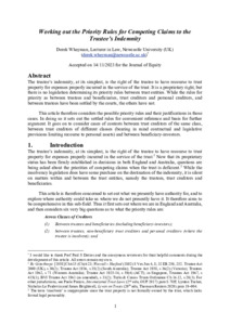 The trustee’s indemnity, at its simplest, is the right of the trustee to have recourse to trust property for expenses properly incurred in the service of the trust. It is a proprietary right, but there is no legislation determining its priority rules between trust entities. While the rules for priority as between trustees and beneficiaries, trust creditors and personal creditors, and between trustees have been settled by the courts, the others have not.This article therefore considers the possible priority rules and their justifications in those cases. In doing so it sets out the settled rules for convenient reference and basis for further argument. It goes on to consider cases of contests between trust creditors of the same class, between trust creditors of different classes (bearing in mind contractual and legislative provisions limiting recourse to personal assets) and between beneficiary-investors.