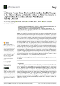 Inulin and freeze-dried blueberry intervention lead to changes in the microbiota and metabolites within in vitro studies and in cognitive function within a small pilot trial on healthy children.