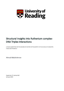 Abdullrahman, A. (2024) Structural insights into Ruthenium complex-DNA triplex interactions. PhD thesis, University of Reading. doi: 10.48683/1926.00117696