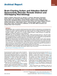 Brain-charting autism and attention deficit/hyperactivity disorder reveals distinct and overlapping neurobiology.