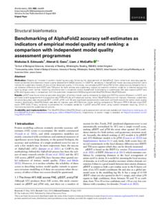 Benchmarking of AlphaFold2 accuracy self-estimates as indicators of empirical model quality and ranking: a comparison with independent model quality assessment programmes.