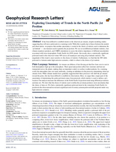 Keel, T., Brierley, C., Edwards, T. and Frame, T. H. A. ORCID: https://orcid.org/0000-0001-6542-2173 (2024) Exploring uncertainty of trends in the North Pacific Jet position. Geophysical Research Letters, 51 (16). e2024GL109500. ISSN 1944-8007 doi: 10.1029/2024GL109500