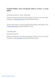 Kolawole, O. M. and Khutoryanskiy, V. V. ORCID: https://orcid.org/0000-0002-7221-2630 (2024) Potential bladder cancer therapeutic delivery systems: a recent update. Expert Opinion on Drug Delivery, 21 (9). pp. 1311-1329. ISSN 1742-5247 doi: 10.1080/17425247.2024.2396958