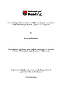 Dambuleni, K. R. (2022) Understanding resilience to climate variability and change in common bean smallholder farming in Malawi: a gender-based perspective. PhD thesis, University of Reading. doi: 10.48683/1926.00117966