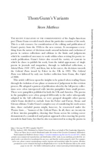 The article reviews the variants between Gunn's mid-period poetry as it appeared in interim pamphlets and his edited final versions.