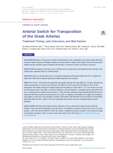 Dorobantu, D.-M., Espuny Pujol, F. ORCID: https://orcid.org/0000-0001-9085-7400, Kostolny, M., Brown, K. L., Franklin, R. C., Crowe, S., Pagel, C. and Stoica, S. C. (2023) Arterial switch for transposition of the great arteries: treatment timing, late outcomes, and risk factors. JACC: Advances, 2 (5). 100407. ISSN 2772-963X doi: 10.1016/j.jacadv.2023.100407