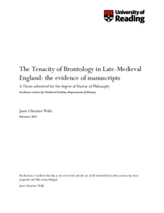 Walls, J. C. (2024) The tenacity of brontology in late-medieval England: the evidence of manuscripts. PhD thesis, University of Reading. doi: 10.48683/1926.00118314