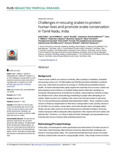 Challenges in rescuing snakes to protect human lives and promote snake conservation in Tamil Nadu, India.