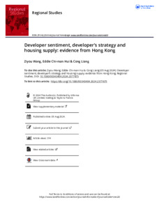 The increasingly important role of sentiment in the housing market has complicated the challenges facing developers during boom-and-bust cycles. This study investigates how developer sentiment affects developers’ decision-making and the housing supply at the project level. As the standard evaluation usually overlooks sentiment resulting in suboptimal inferences, we develop a new theoretical model that analyses both sentiment and developers’ optimal strategies. Our findings suggest a ‘U’-shape relationship between developer sentiment and the expected waiting time to develop. Second, the optimal development density declines when developer sentiment intensifies. The Hong Kong housing market is used as a case for empirical analysis.