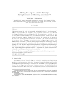 Policymakers around the world are increasingly embracing the idea of a “circular economy” (CE), an economy built on the principle of reuse of materials and produced goods through recycling, refurbishing, and extended product life. By using less new materials per unit of value added, a CE is considered good for both the environment and the economy. Yet closing the material loop also changes the structure of the economy and the incentives for labor- and resource-productivity enhancing innovations. The overall economic impact is thus not so clear. This paper develops a two-sector endogenous growth model with Schumpeterian innovation, in which the primary sector continuously develops new products and uses primary resources in production, while the secondary sector refurbishes retired products for reuse. We show that increased refurbishing increases short-run consumption, but reduces resource prices (relative to wages) and crowds out the incentives for developing new, possibly less resource-intensive products. If innovations are strongly resource-saving, raising the refurbishing rate leads to a net economic loss.