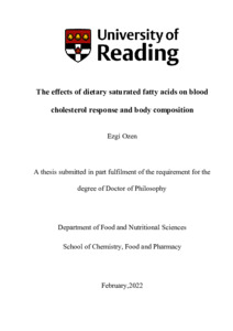Ozen, E. ORCID: https://orcid.org/0000-0001-6203-7018 (2022) The effects of dietary saturated fatty acids on blood cholesterol response and body composition. PhD thesis, University of Reading. doi: 10.48683/1926.00118478