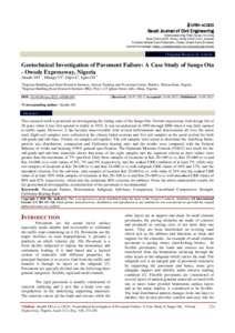 DO, A., VT, M., E, E. ORCID: https://orcid.org/0000-0001-8509-5309 and GN, E. (2021) Geotechnical investigation of pavement failure: a case study of Sango Ota-Owode expressway,Nigeria. Saudi Journal of Civil Engineering, 5 (8). pp. 274-281. ISSN 2523-2231 doi: 10.36348/sjce.2021.v05i08.003