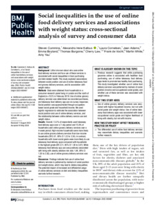 Social inequalities in the use of online food delivery services and associations with weight status: cross-sectional analysis of survey and consumer data.