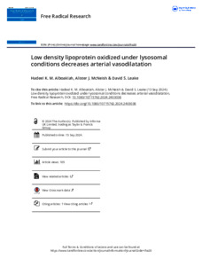 Low density lipoprotein oxidized under lysosomal conditions decreases arterial vasodilatation.