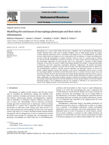 Almansour, S., Dunster, J. L. ORCID: https://orcid.org/0000-0001-8986-4902, Crofts, J. J. and Nelson, M. ORCID: https://orcid.org/0000-0001-5320-2464 (2024) Modelling the continuum of macrophage phenotypes and their role in inflammation. Mathematical Biosciences, 377. 109289. ISSN 1879-3134 doi: 10.1016/j.mbs.2024.109289