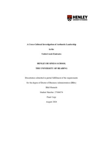 Hamade, B. (2024) A cross-cultural investigation of authentic leadership in the United Arab Emirates. DBA thesis, University of Reading. doi: 10.48683/1926.00118625