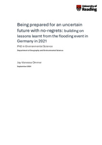 Ommer, J.-V. (2024) Being prepared for an uncertain future with no-regrets: building on lessons learnt from the flooding event in Germany in 2021. PhD thesis, University of Reading. doi: 10.48683/1926.00118702