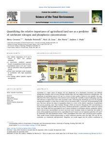 Crowson, M., Pettorelli, N., Isaac, N. J.B., Norris, K. and Wade, A. J. ORCID: https://orcid.org/0000-0002-5296-8350 (2024) Quantifying the relative importance of agricultural land use as a predictor of catchment nitrogen and phosphorus concentrations. Science of the Total Environment, 954. 176589. ISSN 0048-9697 doi: 10.1016/j.scitotenv.2024.176589