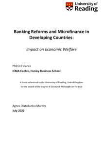 Martins, A. O. (2023) Banking reforms and microfinance in developing countries: impact on economic welfare. PhD thesis, University of Reading. doi: 10.48683/1926.00118757