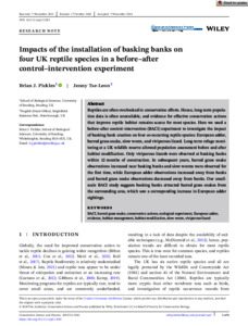 Impacts of the installation of basking banks on four UK reptile species in a before-after control-intervention experiment.