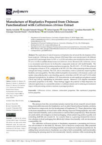 Manufacture of bioplastics prepared from chitosan functionalized with callistemon citrinus extract.