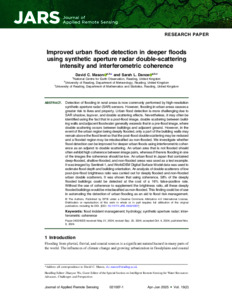 Improved urban flood detection in deeper floods using synthetic aperture radar double-scattering intensity and interferometric coherence.