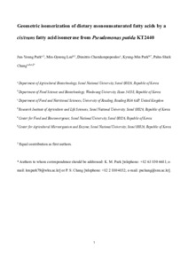 Park, J.-Y., Lee, M.-G., Charalampopoulos, D. ORCID: https://orcid.org/0000-0003-1269-8402, Park, K.-M. and Chang, P.-S. (2024) Geometric isomerization of dietary monounsaturated fatty acids by a cis/trans fatty acid isomerase from Pseudomonas putida KT2440. International Journal of Biological Macromolecules, 281. 136075. ISSN 0141-8130 doi: 10.1016/j.ijbiomac.2024.136075