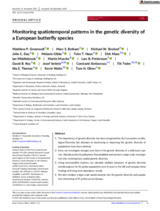 Greenwell, M. P. ORCID: https://orcid.org/0000-0001-5406-6222, Botham, M. S., Bruford, M. W., Day, J. C., Gibbs, M., Høye, T. T., Maes, D., Middlebrook, I., Musche, M., Pettersson, L. B., Roy, D. B., Settele, J., Stefanescu, C., Teder, T., Thomas, N. E., Watts, K. and Oliver, T. H. ORCID: https://orcid.org/0000-0002-4169-7313 (2025) Monitoring spatiotemporal patterns in the genetic diversity of a European butterfly species. Insect Conservation and Diversity, 18 (1). pp. 80-94. ISSN 1752-4598 doi: 10.1111/icad.12786