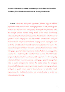 Toward a context and feasibility driven entrepreneurial education: evidence from entrepreneurial intention determinants of Malaysian students.