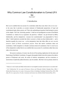Lakin argues that the correct account of a constitution depends on an interpretative Judgment. He takes as the focus of his chapter, two leading accounts of the British Constitution: the positivist, orthodox one put forward by Jeffrey Goldsworthy, and the interpretative, common law constitutionalist one propounded by Trevor Allan. To begin with, he explains the sense in which the two accounts represent rival models of the salient moral and empirical facts and features of British constitutional practice. He then turns to the different ways in which theorists have sought to defend their preferred model. The dominant descriptive methods employed by Goldsworthy and other positivists, he argues, suffer from a common defect: they each assume the correctness of something like the orthodox account, rather than independently establish its correctness. The better method, he contends, is an interpretative one, operating at a deeper level of abstraction than Allan's common law constitutionalism. This method engages questions and concerns of political morality plausibly shared by each account: why does a practice bind, and why is a practice one to which people owe their allegiance (if they do). In so doing, it opens the way for important and genuine disagreement about constitutional practices. It also encourages a conciliatory attitude on the part of scholars.
