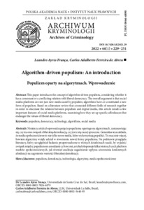França, L. A. ORCID: https://orcid.org/0000-0002-7826-4079 and Abreu, C. A. F. d. (2022) Algorithm-driven populism: an introduction. Archives of Criminology / Archiwum Kryminologii, 44 (1). pp. 229-251. ISSN 0066-6890 doi: 10.7420/AK2021.29