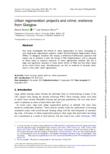 This study investigates the effects of urban regeneration on crime, leveraging recent large-scale regeneration projects—called Transformational Regeneration Areas (TRAs)—in Glasgow, Scotland. We employ a difference-in-differences approach that makes use of variation in both the timing of TRA implementation, and in proximity to these areas to measure exposure to urban regeneration projects. We find a large and significant reduction in crime within 400 m of TRAs but this effect fades as we move further away. Simultaneously, we find no evidence of city-wide reductions in crime after urban regeneration.