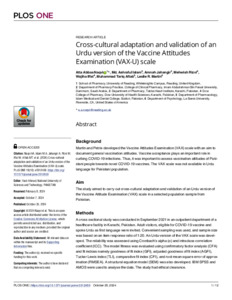 Cross-cultural adaptation and validation of an Urdu version of the Vaccine Attitudes Examination (VAX-U) scale.