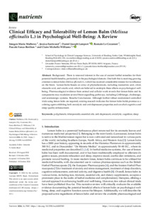 Clinical efficacy and tolerability of lemon balm (Melissa officinalis L.) in psychological well-being: a review.