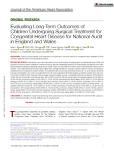 Evaluating long‐term outcomes of children undergoing surgical treatment for congenital heart disease for national audit in England and Wales.