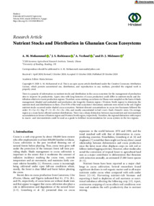Nutrient stocks and distribution in Ghanaian cocoa ecosystems.