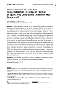 Professional sports are part of the entertainment industry; as such, its business is developed based on the perceived interest in sporting events, which in turn depends on features like: the (i) degree of competitive balance that determines the uncertainty of the outcome; the (ii) concentration of gifted players in a team, whose interaction of talents on the field enhances the quality of the ‘product joint’ that is a sporting event; the (iii) joint aggregate quality of rival teams; the (iv) appeal of rivalries associated with fans’ feelings of empathy and loyalty; etc. This paper focusses on the first three points by modelling the success of team-sport competitions as the result of the overall quality, which encompasses more than the mere sum of individual talents. Sport economists and practitioners generally acknowledge that competitive balance must be fostered to protect uncertainty about the outcome and thus achieve greater interest in sport competitions by fans and the media. In this paper, we argue that certain degree of imbalance in allocation of talent between teams may be preferable – rather than a perfect competitive balance – to broaden the interest of fans on the sport events and, thus, maximise economic outcomes. The paper also examines the discrepancies across the main European football leagues in this regard.