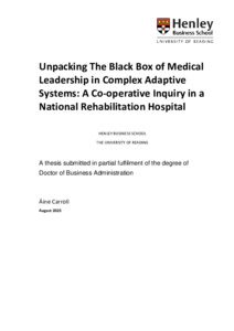 Carroll, A. (2023) Unpacking the black box of medical leadership in complex adaptive systems: a co-operative inquiry in a national rehabilitation hospital. DBA thesis, University of Reading. doi: 10.48683/1926.00119315
