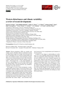 Hunt, K. M. R. ORCID: https://orcid.org/0000-0003-1480-3755, Baudouin, J.-P., Turner, A. G. ORCID: https://orcid.org/0000-0002-0642-6876, Dimri, A. P., Jellani, G., Pooja, Chattopadhyay, R., Cannon, F., Arulalan, T., Shekhar, M. S., Sabin, T. P. and Palazzi, E. (2025) Western disturbances and climate variability: a review of recent developments. Weather and Climate Dynamics, 6 (1). pp. 43-112. ISSN 2698-4016 doi: 10.5194/wcd-6-43-2025