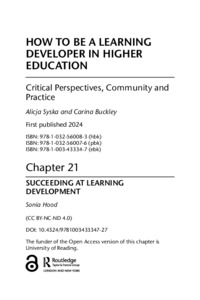 Hood, S. (2023) Succeeding at learning development. In: Syska, A. and Buckley, C. (eds.) How to be a learning developer in higher education. Routledge, London, pp. 195-202. ISBN 9781032560083 doi: 10.4324/9781003433347-27