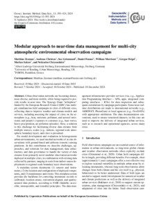 Zeeman, M., Christen, A., Grimmond, S. ORCID: https://orcid.org/0000-0002-3166-9415, Fenner, D., Morrison, W., Feigel, G., Sulzer, M. and Chrysoulakis, N. (2024) Modular approach to near-time data management for multi-city atmospheric environmental observation campaigns. Geoscientific Instrumentation, Methods and Data Systems, 13 (2). pp. 393-424. ISSN 2193-0864 doi: 10.5194/gi-13-393-2024