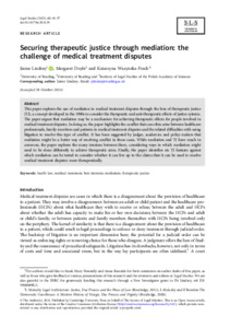 Lindsey, J., Doyle, M. and Wazynska-Finck, K. (2025) Securing therapeutic justice through mediation: the challenge of medical treatment disputes. Legal Studies: The Journal of the Society of Legal Scholars, 45 (1). pp. 40-57. ISSN 1748-121X doi: 10.1017/lst.2024.39
