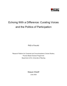 Sheleff, M. (2023) Echoing with a difference: curating voices and the politics of participation. PhD thesis, University of Reading. doi: 10.48683/1926.00119536