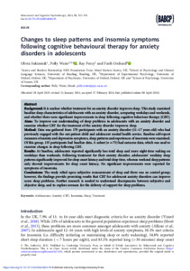 Changes to sleep patterns and insomnia symptoms following cognitive behavioural therapy for anxiety disorders in adolescents.