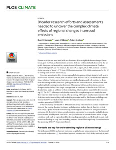 Samset, B. H., Wilcox, L. J. ORCID: https://orcid.org/0000-0001-5691-1493 and Allen, R. J. (2024) Broader research efforts and assessments needed to uncover the complex climate effects of regional changes in aerosol emissions. PLOS Climate, 3 (10). e0000508. ISSN 2767-3200 doi: 10.1371/journal.pclm.0000508