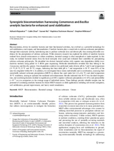 Rajasekar, A., Zhao, C., Wu, S., Murava, R. T. and Wilkinson, S. (2024) Synergistic biocementation: harnessing Comamonas and Bacillus ureolytic bacteria for enhanced sand stabilization. World Journal of Microbiology and Biotechnology, 40 (7). 229. ISSN 0959-3993 doi: 10.1007/s11274-024-04038-3