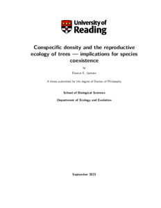 Jackson, E. E. (2024) Conspecific density and the reproductive ecology of trees — implications for species coexistence. PhD thesis, University of Reading. doi: 10.48683/1926.00119733