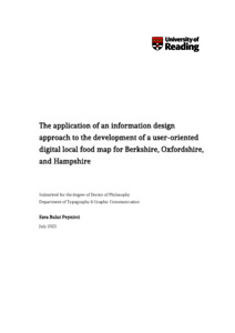 Bulut Peynirci, E. (2024) The application of an information design approach to the development of a user-oriented digital local food map for Berkshire, Oxfordshire, and Hampshire. PhD thesis, University of Reading. doi: 10.48683/1926.00119742